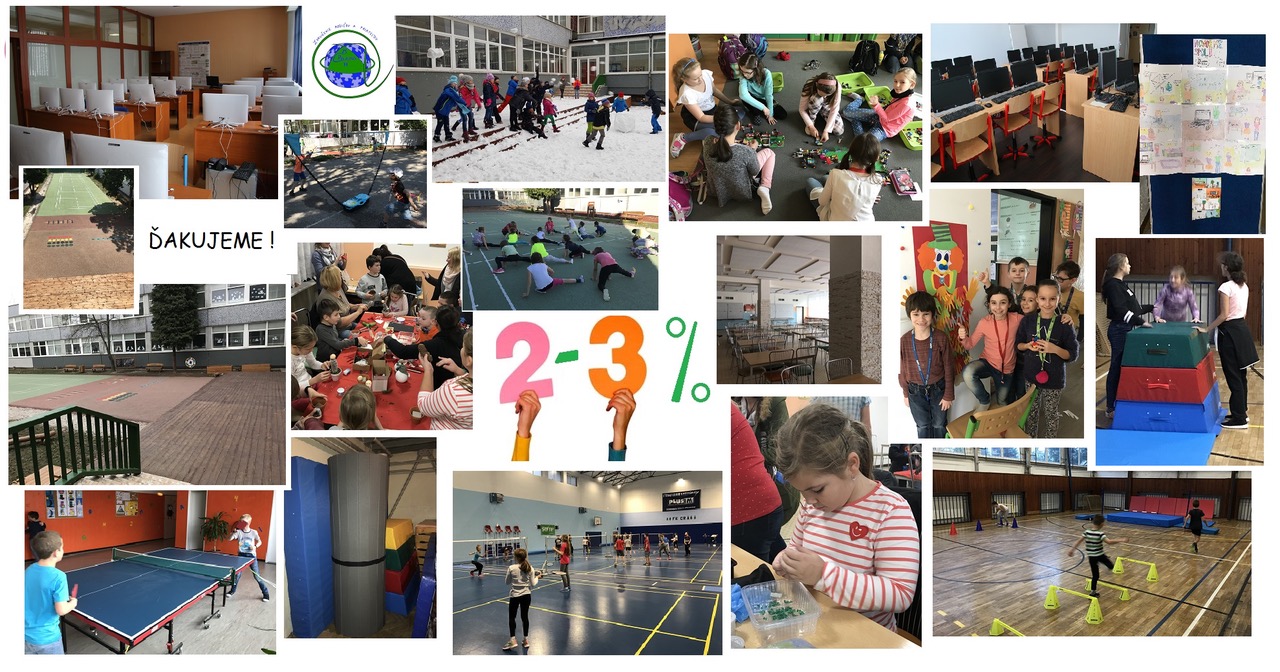Venujte aj Vy svoje 2 alebo 3% dane deťom. Za príspevok, ktorým nás podporíte zakúpime žiakom moderné učebné pomôcky a zmodernizujeme exteriér a interiér našej školy.