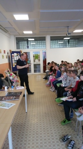 Po krátkom kultúrnom programe sa okrem p. riaditeľky Mgr. Ivety Mikšíkovej prítomným prihovoril taktiež Mgr. Ľuboš Krajčír, zástupca starostu. Na tejto akcii sa zúčastnila aj vedúca školského úradu Mgr. Ľubica Szilasiová, ktorá bola spolu s p. Navrátilom, historikom p. Klačkom a p. Prieložnou v porote pod vedením p. Zuzany Ivanovej.