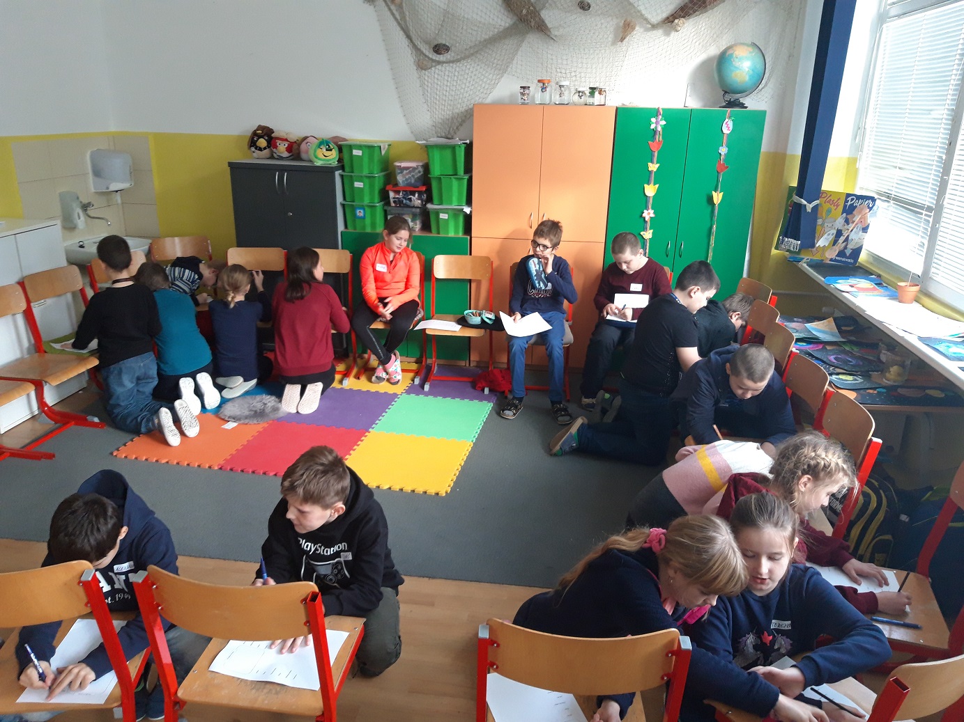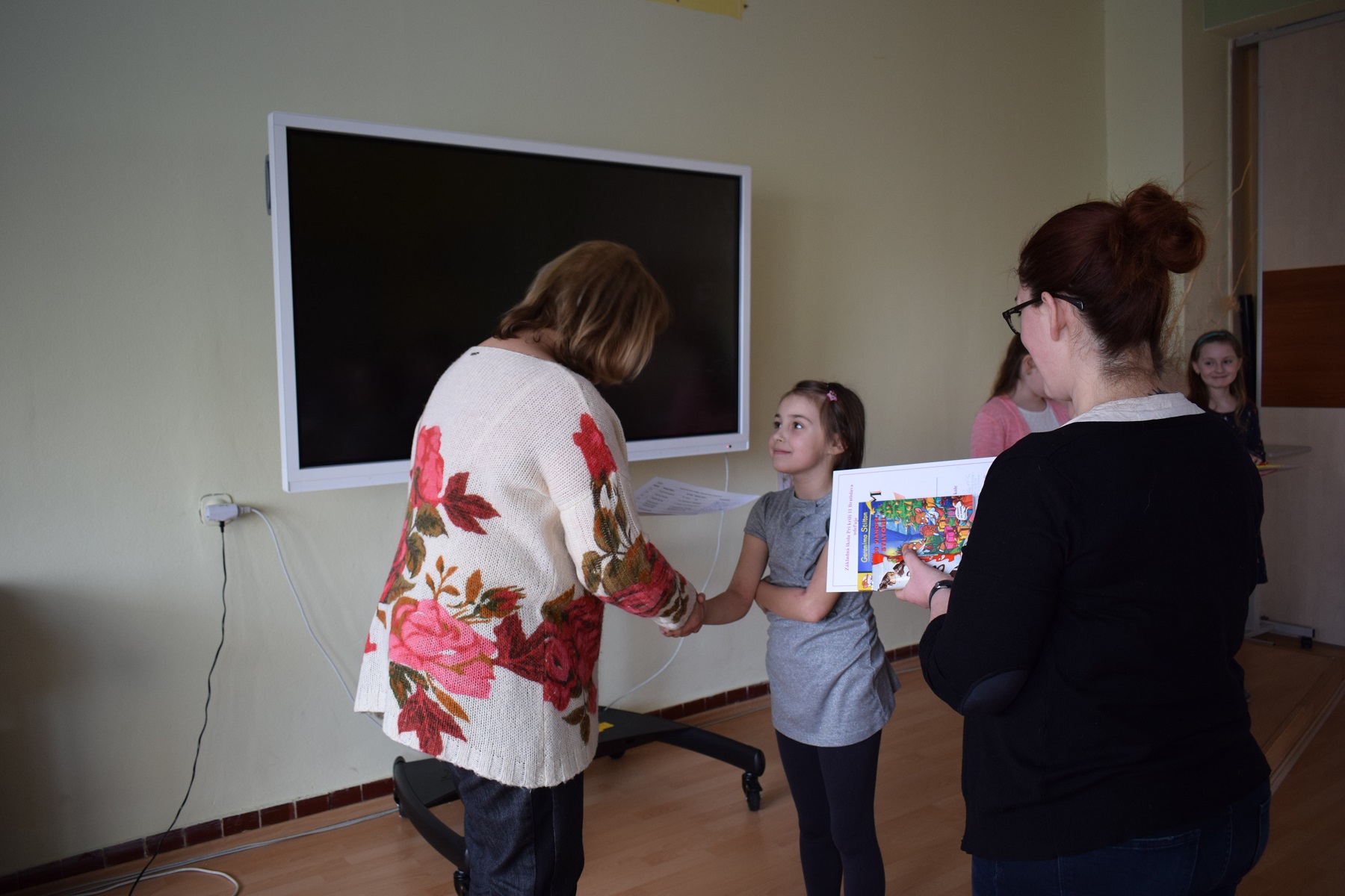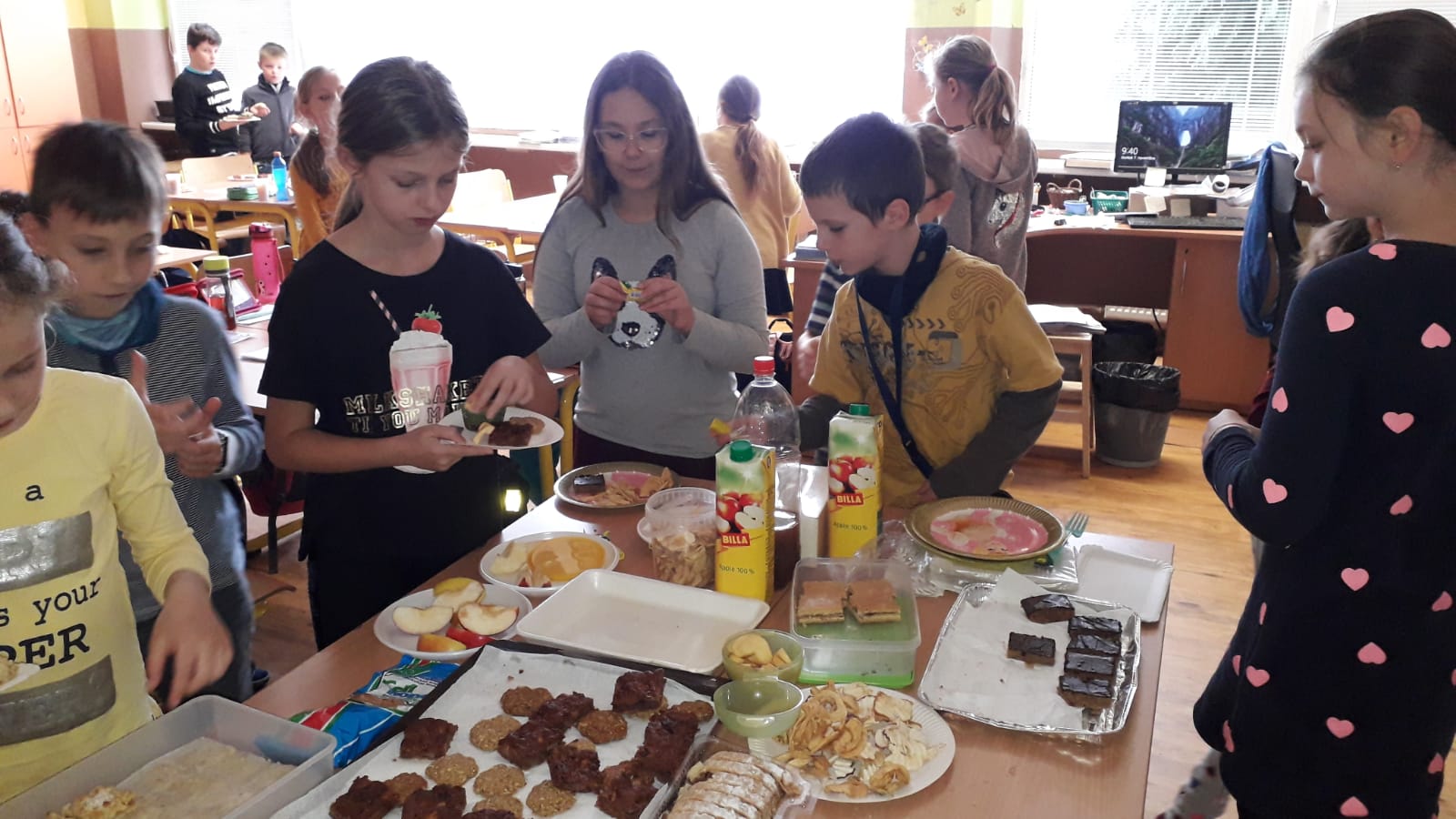 Zápis prebiehal v štyroch triedach, v ďalšej sa mohli deti pohrať, rodičia sa mohli občerstviť kávou, vodou s mätou a citrónom a malým pohostením. Tu si mohli prezrieť aj videovizitku našej školy.