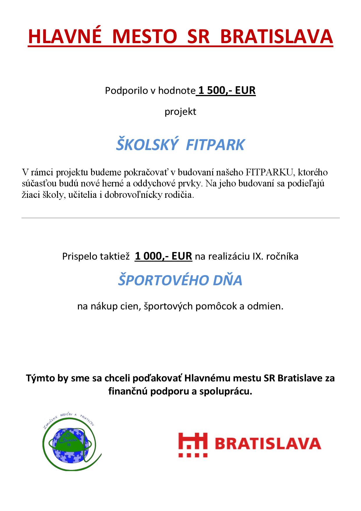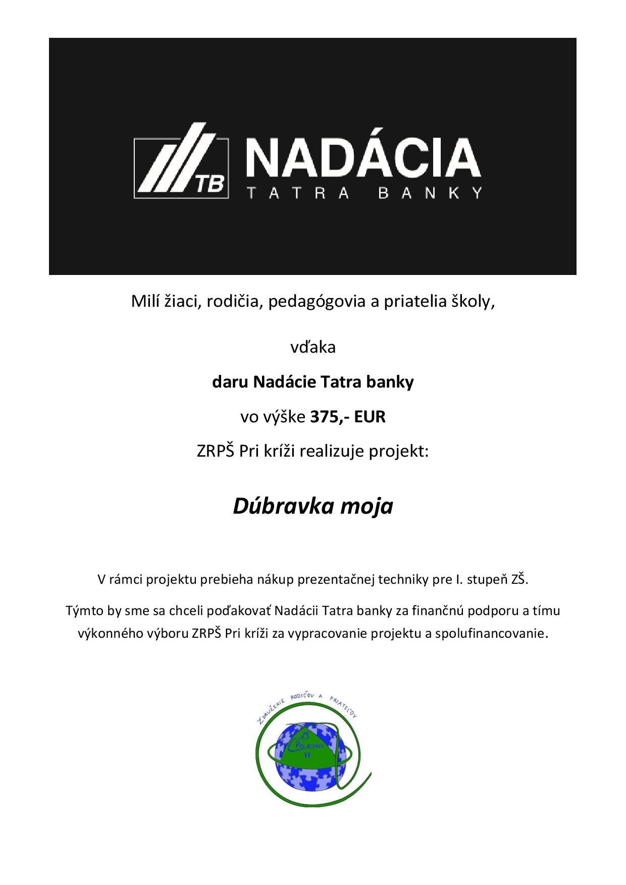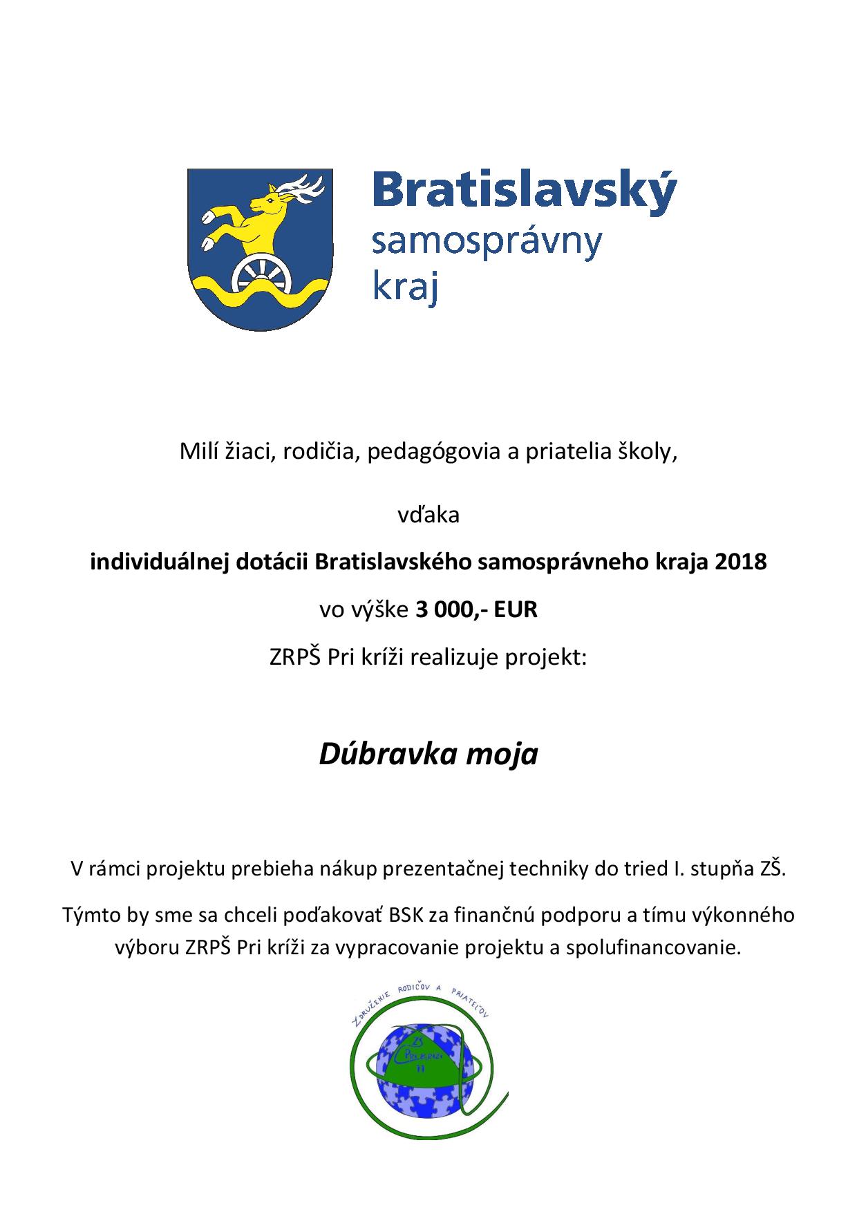 Naše rodičovské združenie ZRPŠ Pri kríži 11 bolo tento rok opäť zaregistrované na príjem podielu dane z príjmu.