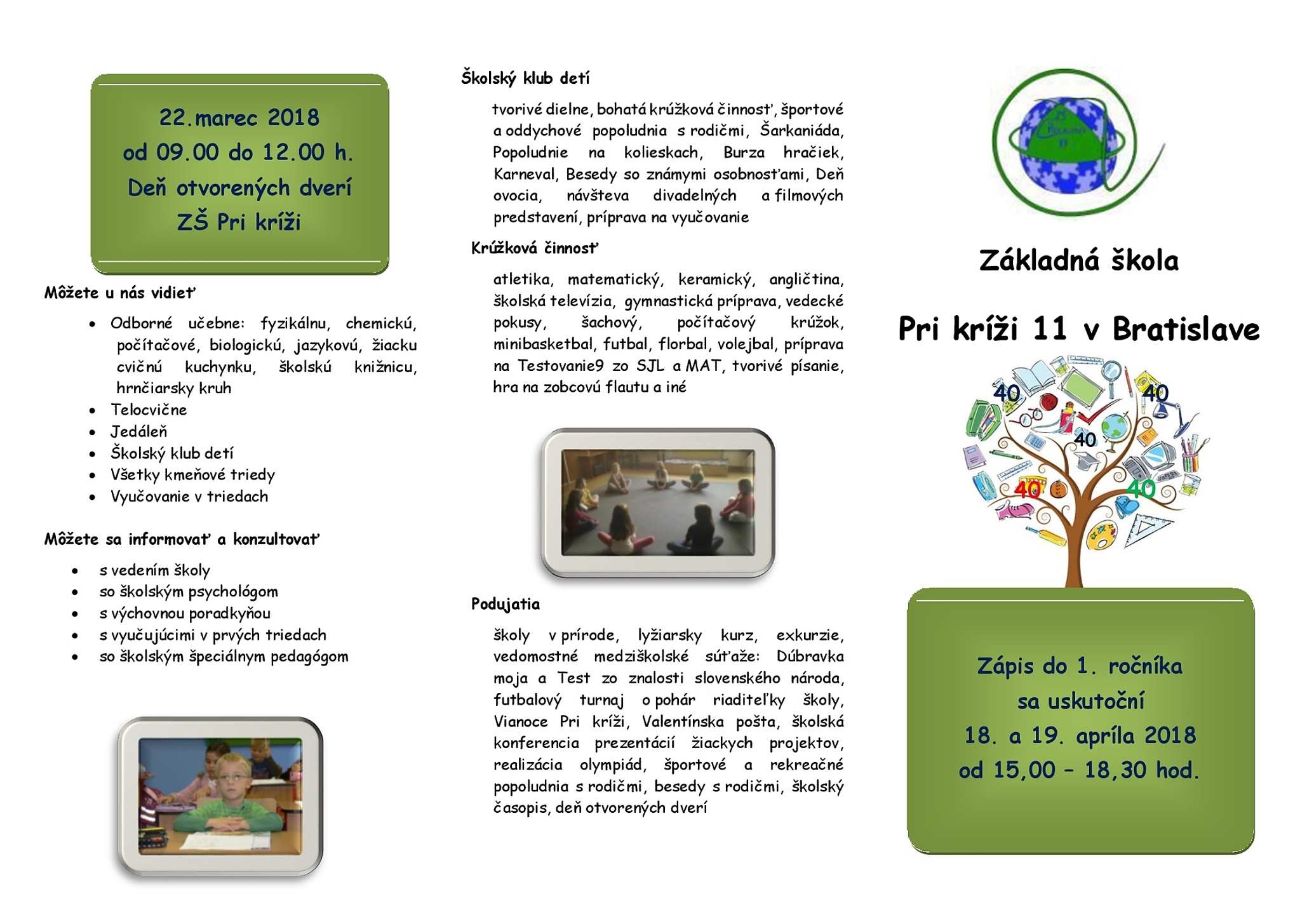 V dňoch 20. a 21. apríla sa uskutočnil zápis prvákov aj na našej škole. Záujem zasadnúť do školských lavíc práve v základnej škole Pri kríži prejavilo 130 detí. Veľkému záujmu sa tešíme.