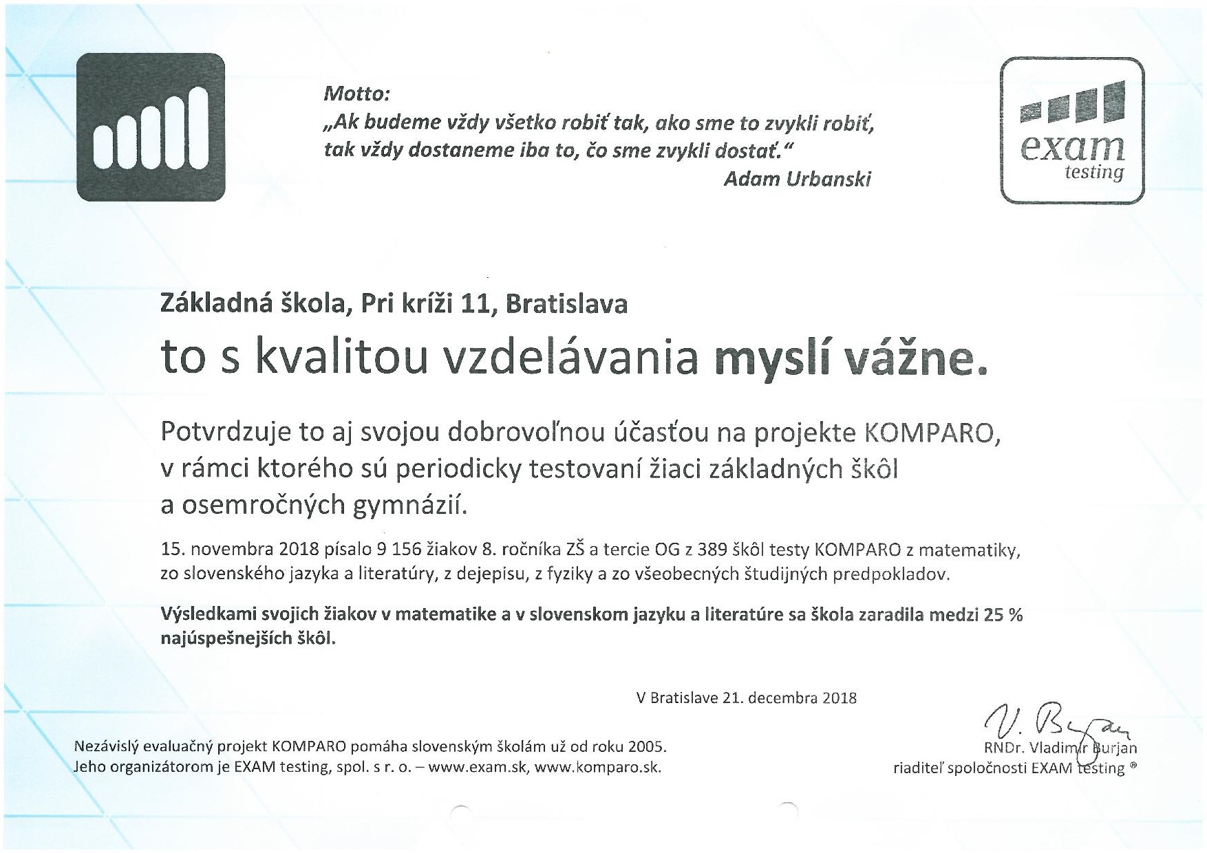 Vážení rodičia a priatelia školy.