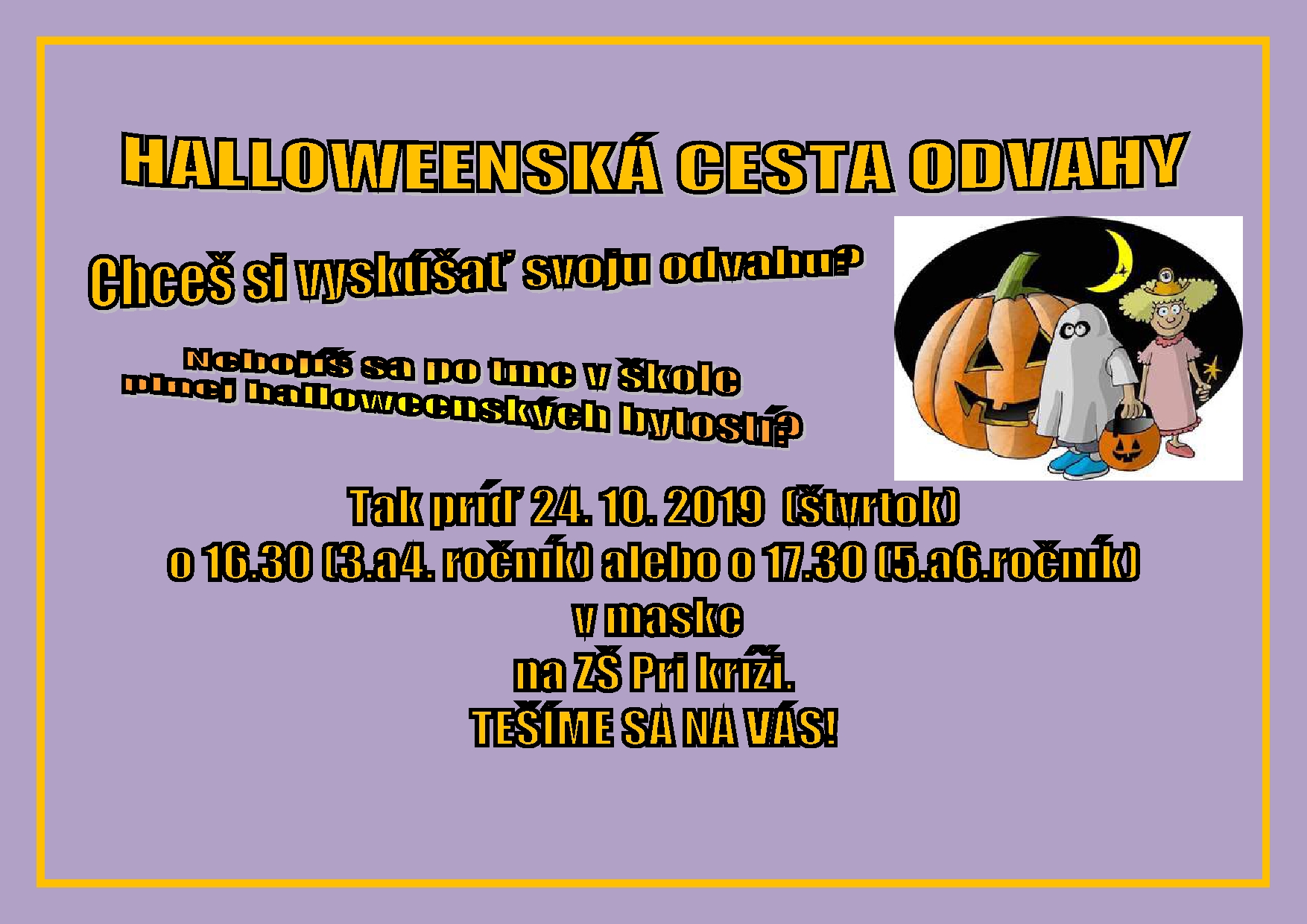 "Sú to strašidlá, ich netreba sa báť, iba strašidlá, tak buď ich kamarát!" v duchu piesne od Mira Jaroša sa naša trieda premenila na 1.B plnú strašidiel. Pri príležitosti sviatku Všetkých svätých sme sa naučili čo tento sviatok znamená, prečo si ho pripomíname a taktiež sme si vysvetlili rozdiel medzi sviatkom Všetkých svätých a Heloweenom. Dalej sme pokračovali tvorivými dielňami, kde sme si vyrezali a namľovali svetlonosy a vyrobili si svietničky, a strašidelných duchov s pavúkmi. Celé sme to zakončili Heloweenskou party ako sa patrí, kde sme si zasúťažili a zatancovali. FOTOGALÉRIA